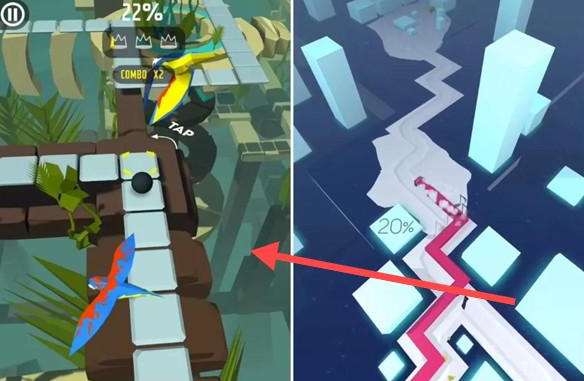 游戏里有一个小球,大家需要操控它跟着音乐的节奏在地图上跳动,每一张地图的设计都像迷宫一样,小球在上面,跳跃的样子就如同在跳街舞。背景音乐是专门创作的轻音乐,听起来可以让大家瞬间放松,缓解压力。大家在闯关的路上,可以捡紫色的金币,这些金币攒够之后就可以兑换出非常多的道具,道具可以帮助大家在闯关的时候变得更加顺利,减少更多的难度。