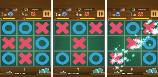 有两种不同的棋子所展现,比如一方选择x,而另一方就需要选择o,在经典的九宫格当中,轮流画图的方式,想方设法将自己的三个图案连接在一起,不论是垂直方向或者是水平方向,就连斜着的方向都可以轻松连接。还有不同难度的等级,符合所有年龄段人群。