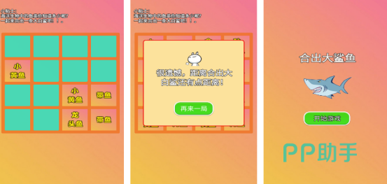 经典的合成玩法以及海底生物巧妙结合,开局之后将会看到各种鱼类的名字,从小的小黄鱼开始,最终还可合成最大的大鲨鱼。大家合理滑动屏幕,就可以将相同等级的鱼类放在一起,以此快速合成,形成最终的大鲨鱼。每次在合成之后获得的分数也会越来越高。