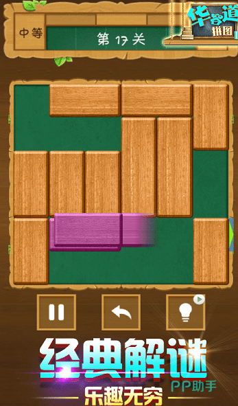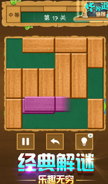 核心目标是复刻传统华容道的经典棋局,将其原始玩法的核心趣味完整保留了下来。游戏采用闯关模式来搭建的玩法,关卡覆盖了从新手入门,到高级挑战的全难度。每一关都严格遵循经典的解谜思路,还收录了不少在民间广为流传的经典棋局排布,让玩家可以沉浸式感受华容道的吸引力。