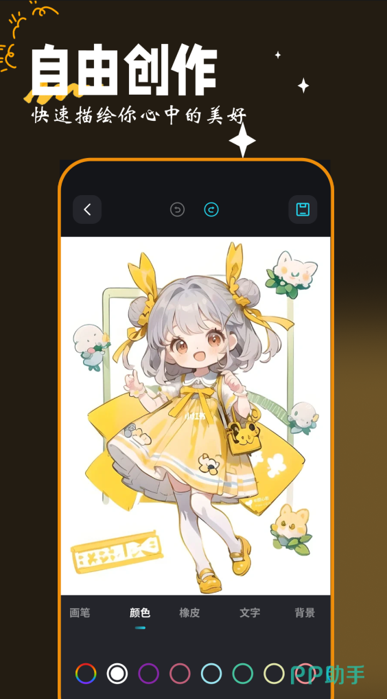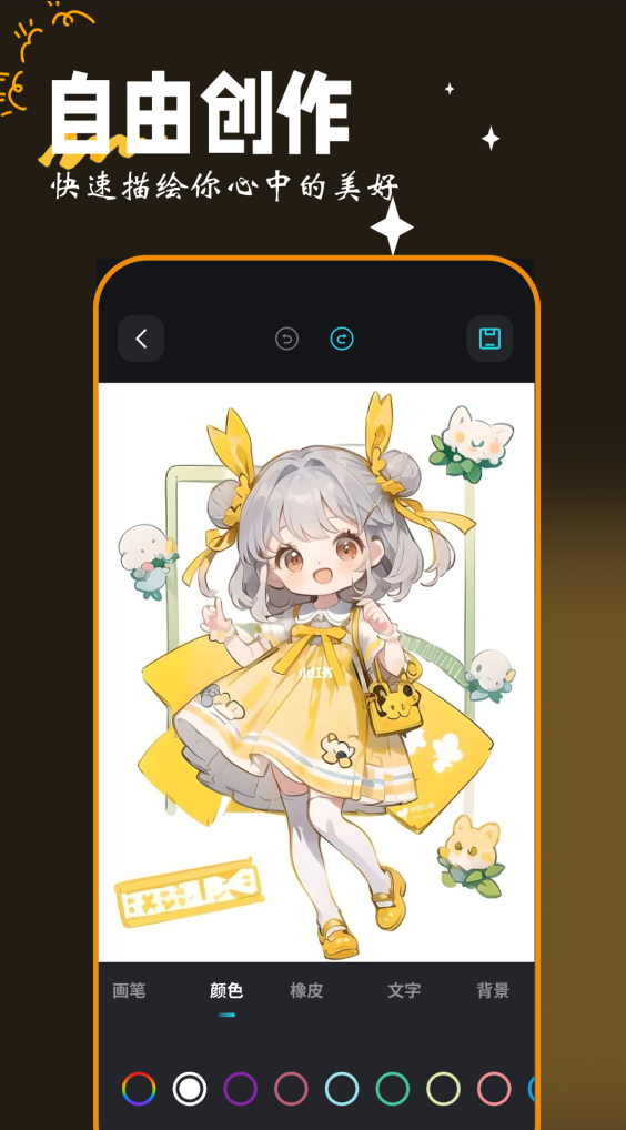 它的设计界面就再简单不过,就是纯粹的一个画图工具,不管是用在办公、学习还是更为多元化的选择上,你都能随时随地把它想象成为是一个画板,除了自带的画图工具外还能将贴纸文件添加进去,纯自由创作想画什么就画什么,绘画完之后还能添加好看的背景。