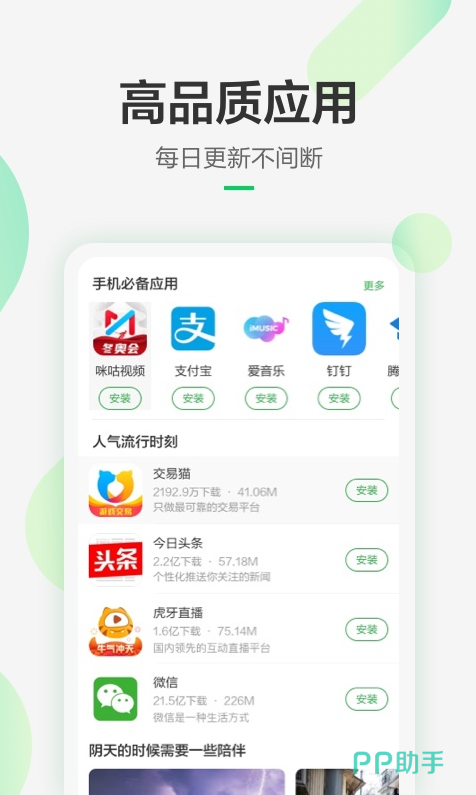 涵盖诸多安卓精品应用,掌握实时热门资源和新款软件的排行,能够智能化地对软件进行管理,应用内的软件可以高度下载安装,还能跳过繁琐的安装环节,如果新机不知该下载什么的话还可以看看每日的榜单推荐,更新速度非常快,让你。