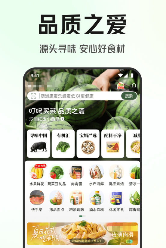国内知名程度极高的B2C生鲜配送平台,显著特点就是入驻门槛低,人人都能开店,且日活用户上亿,在这里不缺少流量,运营难度适中,一个管理端就能解决各种数据的分析和系统集成,也适用于各种规模的生鲜配送超市,无论是大超市还是小门店。