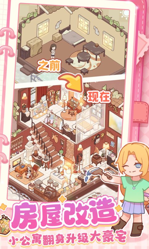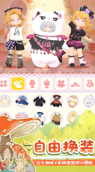 凭借软萌可爱的画面风格和多样的互动模式,给人带来暖心又治愈的游玩感受,玩家能打造温馨小窝。无论是家具的摆放位置,还是墙面的装饰搭配,都能发挥自己的想象力,除了装扮室内空间,还能为角色挑选不同款式的衣服,塑造出不同的模样。户外游玩项目也很有意思,能种鲜花,也能养宠物,沉浸式体验田园生活。