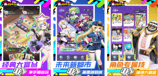 支持三人共同对战模式,以卡牌对战为主要核心。其实从玩法上来看,和经典的大富翁玩法极为相似,在超大的棋盘中通过投掷骰子的方式就可以购买地块,并且建立自己的高楼大厦,通过扩张领地以及完成订单等多种。同时就可轻松抵达终点,从一个不为人知以及负债累累的平凡人,最终成为当地的大富翁。