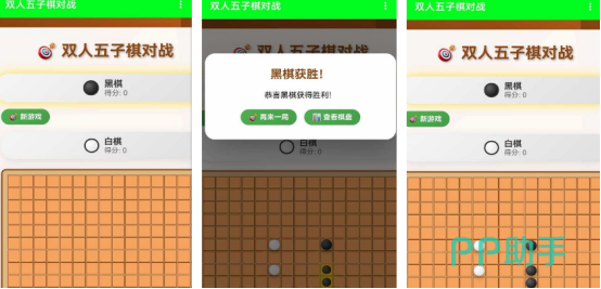 简约的棋盘格,其中有黑色以及白色两种不同的颜色棋子,大家通过点击棋盘中的空白方块即可成功放子,通过轮流走子的方式,想方设法将自己的5颗棋子连成一条线,但是在下棋的过程中,也需要及时查看对方的棋子走向,做出一系列的阻止。对局结束之后将会看到双方的得分。