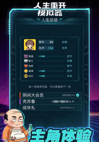 文字模拟类型的升级版本,在原来属性分配和随机事件的基础上加入了修仙和魔法内容,开局分配20点属性选3个天赋。不同天赋组合,会让人生走向完全不同的方向,修仙部分做得比较深入。活到100岁才能开始练气,之后要经历凝气筑基金丹好几个阶段,突破的时候属性和寿命上限都会涨。贫民窟翻身、皇室内斗、修士夺舍这些剧情加起来有一千多种。