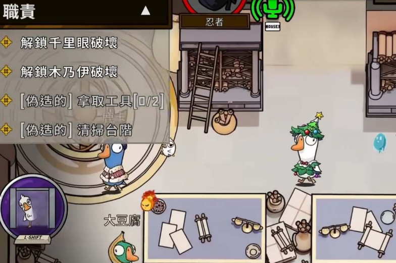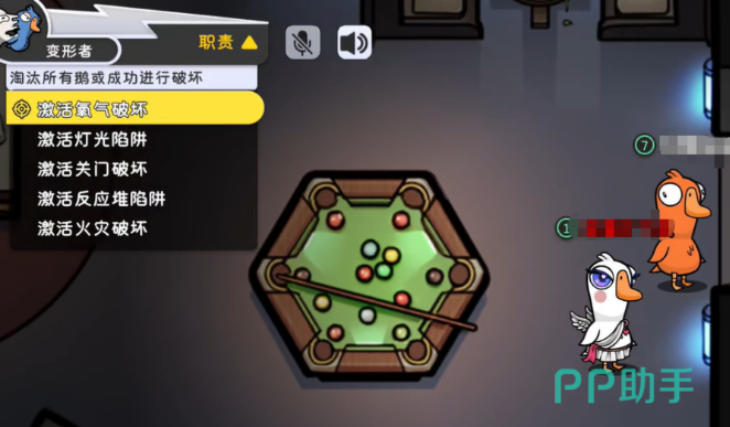 在开始游戏之后,你可以选择加入不同的阵营,不管是鹅阵营还是鸭子阵营,或者是中立阵营都是可以的,每个阵营中的角色都不一样,并且不同的角色将会有着不同的特殊技能,比如说有些角色可以悄无声息的杀死敌方玩家,而有些角色在被杀死之后,将会发出巨大的警报声,但不管你处于哪个阵营,都有一些必须要完成的任务和一些伪造的任务,如果你处于反派阵营的话,那么这些伪装的任务可以帮助你轻而易举的伪装身份达到目的。