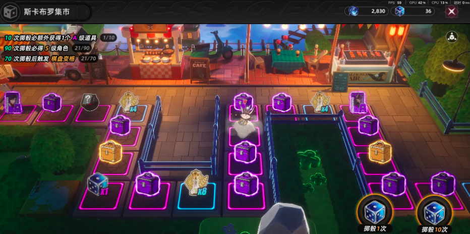 而跳脱传统设计思路的还有他的抽卡设计,整体抽卡过程非常类似于大富翁里的智骰子,玩家掷出色子停在哪里就可以获得对应奖励,同时在盒子奖励当中还加入了橙色箱子,玩家可以直接从中抽取s角色,让抽取概率更加一目了然,让你抽卡歪率大大降低。