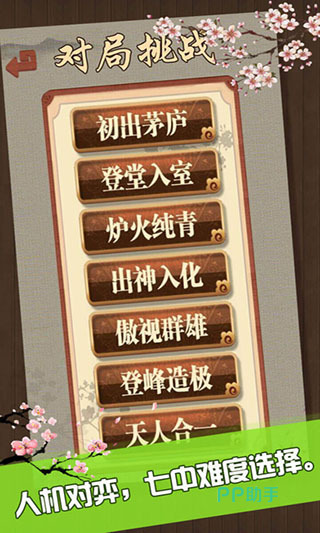 在线匹配到不同水平的玩家时都能够进入到棋盘中和他们比拼棋艺,单机模式中支持ai对战或者是双人对战在难度的级别上也是逐层划分的,非常适合新手进行练习。设置的残局闯关任务,对于玩家的解决能力也有着很高的要求。具有古风气息的画面效果,使得棋盘的设计更加优雅,视觉上的审美度还是非常高的,玩家可以在下棋时有一个很好的心情。
