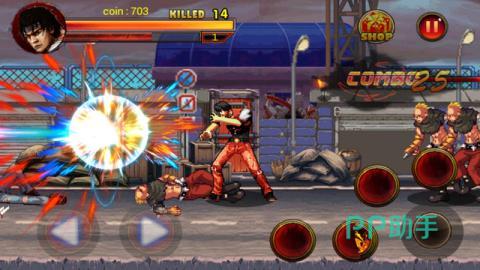 《拳皇街霸罪恶都市》把横版动作格斗和罪恶都市开放探索融合起来,玩家可以在游戏中学习格斗技巧,参加挑战擂台和清空帮派据点等挑战任务,完成以后会获得技能点和装备,用它们提升格斗能力或者加强角色数值。游戏画面风格为街机格斗风,角色动作流畅,打击火花和特效明显。此外,城市气氛带有浓重的街头格斗风格,涂鸦墙和废弃砖楼都是玩家们战斗的舞台。