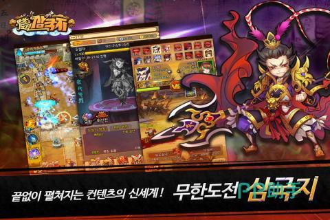 《无限挑战:三国》一款由韩国游戏团队开发,针对角色进行了引人侧目的大头萌化的形象设计,游戏以动作结合塔防的形式,让大家在这儿去经历各种永无止境的挑战,而且针对三国武将,引入了更为独出心裁的无上限的养成体系,一共配备了9种攻守体系各有优势的防御塔类型。