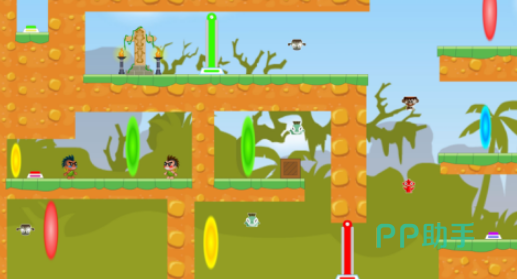 以双人协作玩法为核心,通过跳跃、躲避等方式在不同的场景中任意穿梭,并躲避陷阱,有超级明快的可爱卡通风格,人物动作更是相当夸张,丰富的角色表情,再加上别致的细节,猛犸骸骨,又或者是篝火,都展现得非常精美,将原始部落的生活氛围完美呈现。这样的特色视觉效果,营造出幽默又轻松的体验感,这里也拥有搞笑又实用的特殊技能,闯关的时候也有极强的故事代入感。