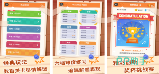 经典的数独玩法,数百种特色关卡,可尽情挑战并,多种不同的难度练习,以及追踪解题表现都展现得非常别致,具有精彩创新,可以参与到特色赛事当中,有机会成为真正的挑战者,并获得更多奖杯。将简单的数独又融入了全新的特色设计,其中没有内购模式,比较适合休闲达人,在畅玩的过程当中负担,精美的界面,再加上足够轻松的钢琴乐曲,享受无限乐趣。