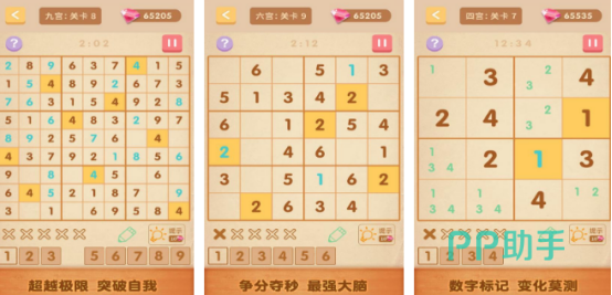 在这里也可来一场数字之间的较量,看一看谁才是真正的最强大脑,有超级经典的数独玩法,比如较为简单的四宫格,即便幼儿园的小朋友也能轻松完成,还有精心设计的九宫格和难度更高的十二宫格,提高逻辑思维,让大脑快速运作,有循序渐进的关卡难度,让大脑更加灵活,游戏拥有非常别致的创新设计,将给小伙伴们带来独一无二的体验。