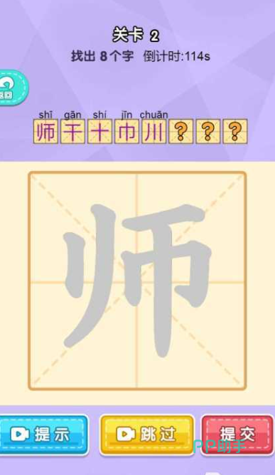 添一笔变新字的背景是一块卡通画板,每次都会出现一个简单的汉字,孩子们需要根据提示再屏幕上给汉字添上一笔,组合成新的汉字,像是出现一的时候,就可以通过把它变成二或者十来让游戏通关,游戏里面的笔画会有动画效果,添加成功以后还会跳出下贴纸来作为奖励,整个过程有趣不枯燥,做游戏的过程里大家和可以进行思考多种解题思路。