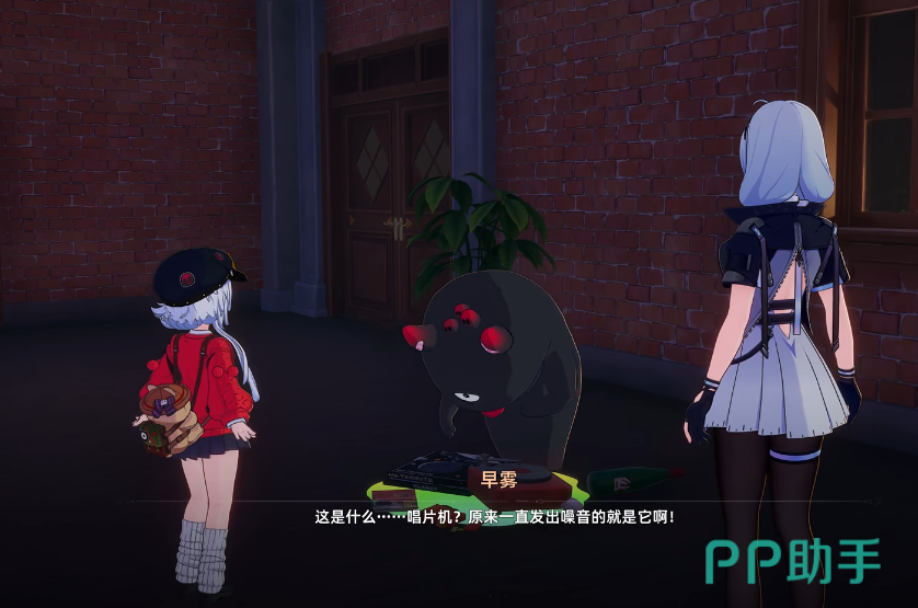进入巷尾建筑后,沿楼梯抵达二楼。此处将触发剧情事件:早雾与鬼郎丸同时现身,揭晓唱片机已被鬼郎丸吞入体内。成功取回设备后,返回初始NPC【西德】处交付道具,任务即告完成。