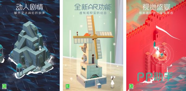 纪念碑谷一款画风绝美的解谜手游,很多玩家将其戏称为解密艺术品标杆,通过视觉错位玩法,搭配各种神奇的几何图案,3d技术还原更具沉浸式体验的关卡。神秘清新的绘画风格,配合着疗愈系的背景音效,与艾达公主展开一场不一样的心灵冒险,极具哲学的游戏内容,在每一次旅程中都可以解锁疗愈故事。