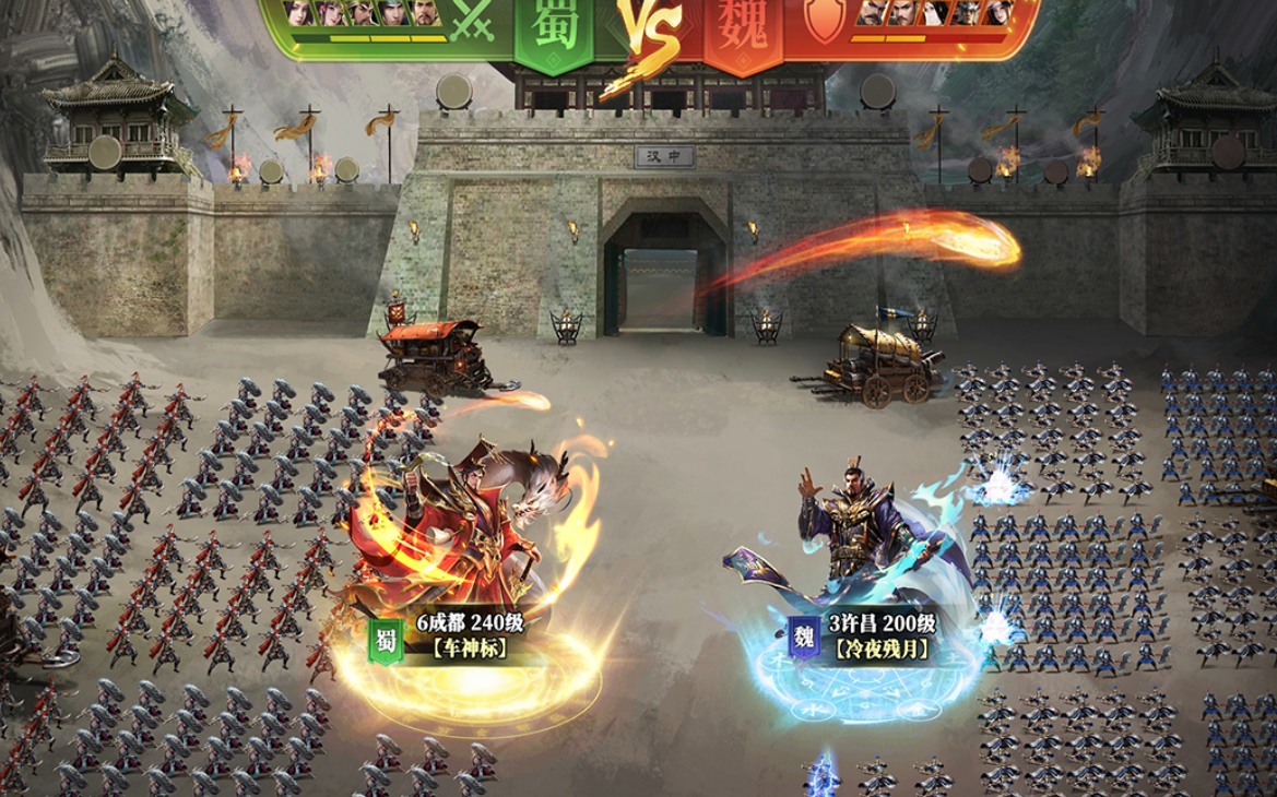 以真实三国地图为蓝本,全方位还原160多个城池和上百位武将,20多种攻城器械和10多种兵种都能在战场上看到。全服玩家共处一张大地图,可以开展野战城战国战等多种对抗,城池按战力排名定太守,攻占首都就能称帝。加入了挂机系统,在线或离线都能获得高收益,降低了散人玩家的挫败感。