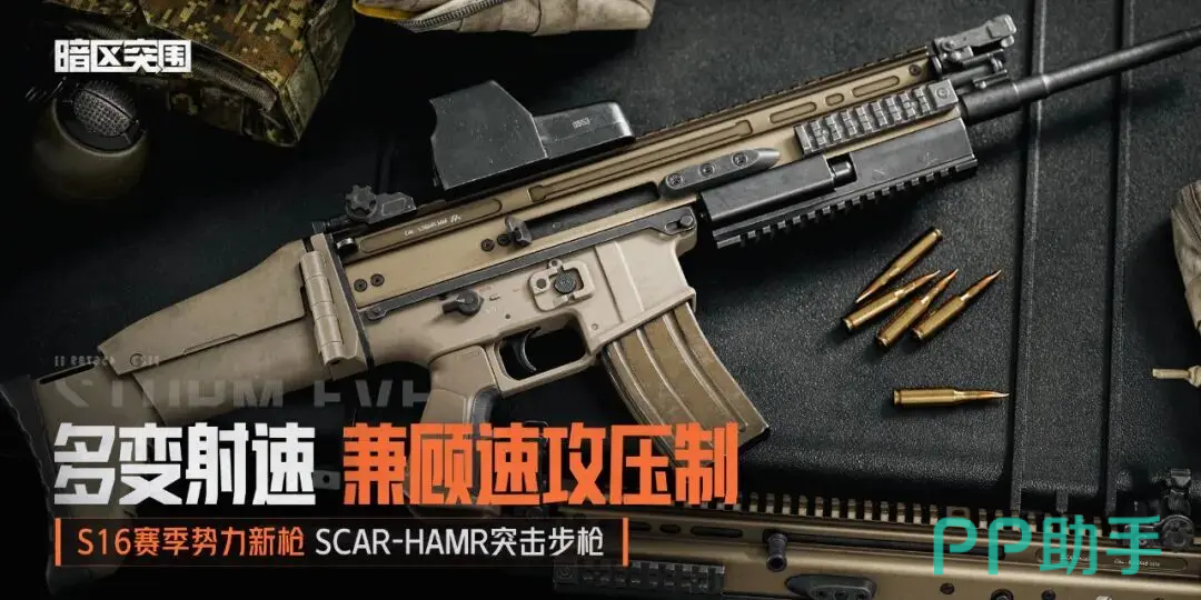 赛季专属武器系统同步迭代:SCAR-HAMR作为S16势力武器登场,搭载创新双段式发射机构,实现前3发高速点射(适配突发接敌),后续转为稳定压制射速,兼顾爆发与持续输出;常规赛季武器A545维持高射速特性,支持全系主流配件扩展,泛用性强,适配多流派构建需求。