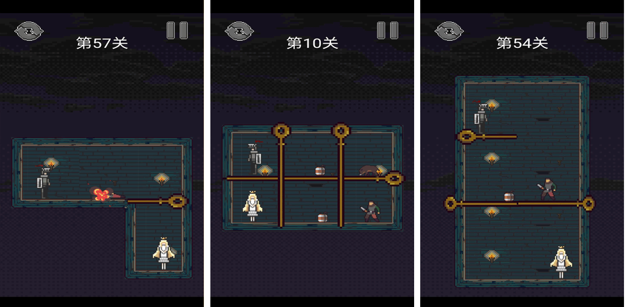 《骑士救公主》跳出传统动作框架,采用独创的“拉环式”交互解谜机制。每关需通过拖拽、旋转、连接各类机关环扣,为骑士开辟安全路径,最终抵达被囚禁的公主身边。像素美术风格细腻,角色动作灵动,陷阱设计巧妙,强调逻辑推演与时机把控。无需复杂操作,却充满烧脑乐趣,适合喜欢轻度挑战与剧情互动的玩家。