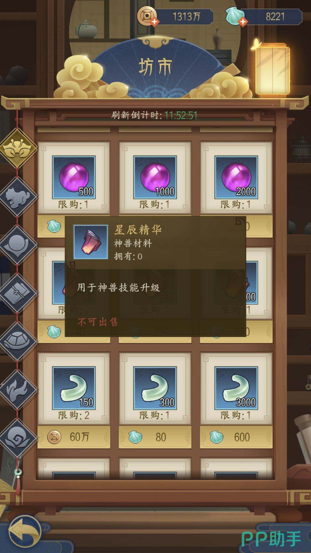 3.星辰精华主要有三个渠道获取,第一个是坊市购买,平民玩家不推荐,第二个是征战掉落,也就是打主线闯关,通过一些关卡还有成就奖励也会有星辰精华。第三个是高级占卦,占卦用的签也是个稀有道具,建议玩家留着每周抽几次完成周任务,不然要用扇贝去坊市买。