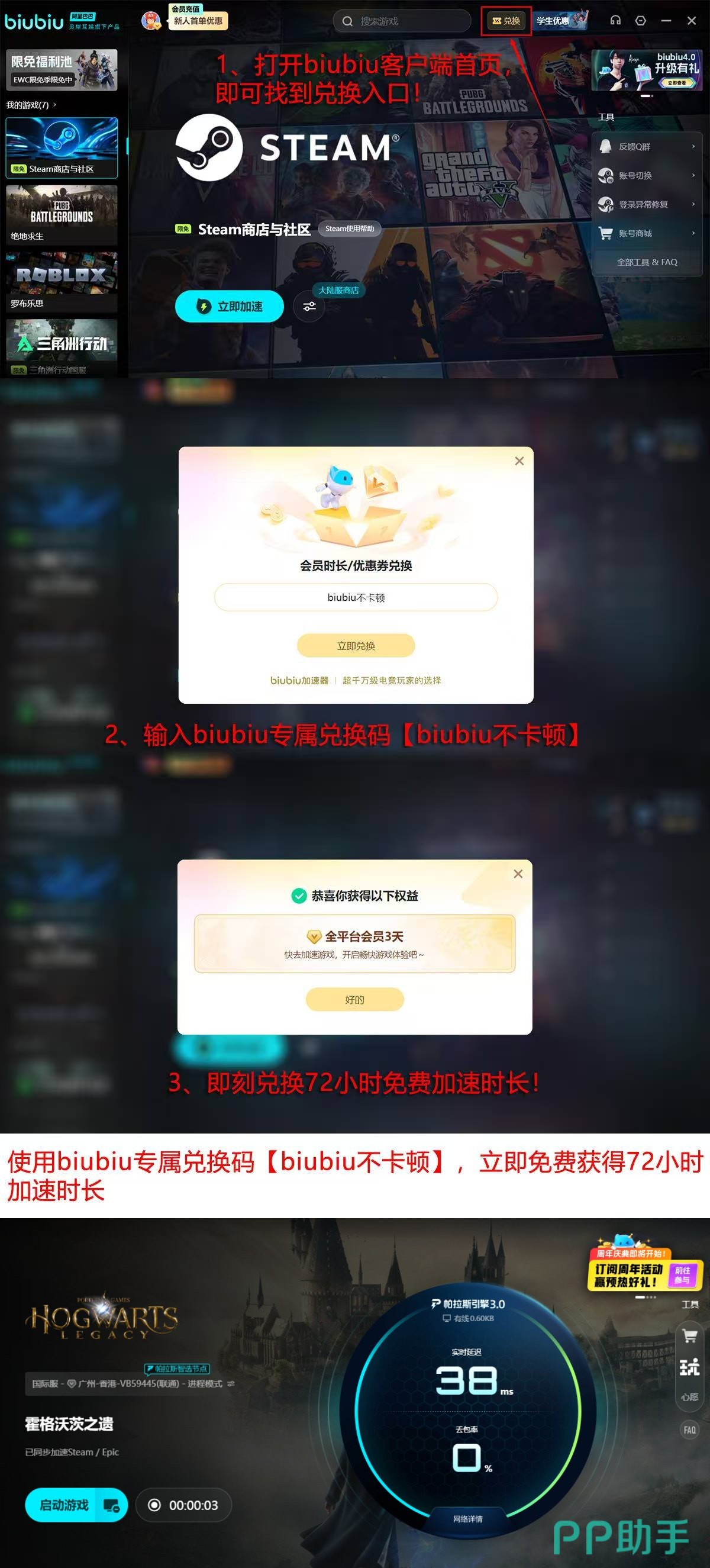 当前正值新用户福利窗口期:注册biubiu加速器账号后,可立即启用无门槛全平台24小时免费加速权限;在客户端内输入专属口令【biubiu不卡顿】,还可额外激活连续72小时加速权益,累计享有多达96小时的免费使用时长。