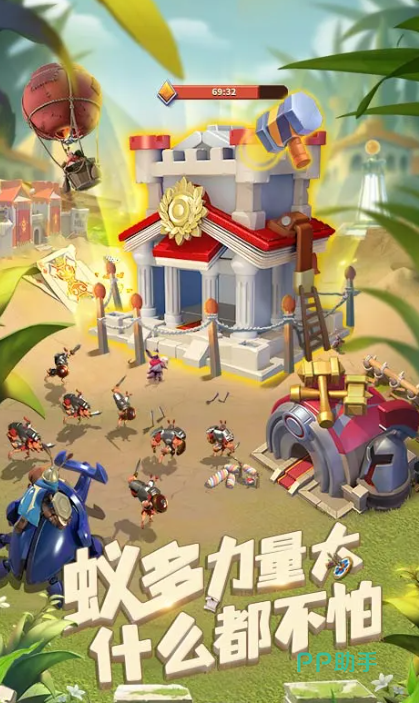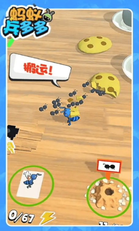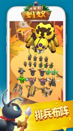 游戏设定为微观世界守卫战,玩家担任蚁群指挥官角色。通过滑动屏幕召唤指定类型蚂蚁单位,形成梯次防御体系:前排重甲兵蚁承担伤害,中排喷酸蚁实施范围压制,后排信息素工蚁提供视野与增益。地图按生态位划分为腐叶带、菌毯区、树皮堡垒等战略要地,占领后激活专属资源产出。随着关卡推进,需应对变异节肢怪物与环境灾害(如暴雨冲刷、蚁酸腐蚀),所有单位成长数据严格对应真实蚂蚁体型比例与代谢速率建模。