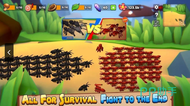 本作以极简安装包与低功耗运行著称,适配中低端设备。核心玩法融合资源采集、阵型部署与即时战术对抗——玩家可调配不同职能的蚂蚁单位(如搬运工、战士、侦察蚁)协同作业;战斗采用多线程冲锋机制,数十只蚂蚁同步突袭敌方巢穴,呈现密集而有序的围攻节奏。操作仅需点击与拖拽,无复杂技能轮盘或冷却系统,新手三分钟内即可指挥整支蚁群投入实战。