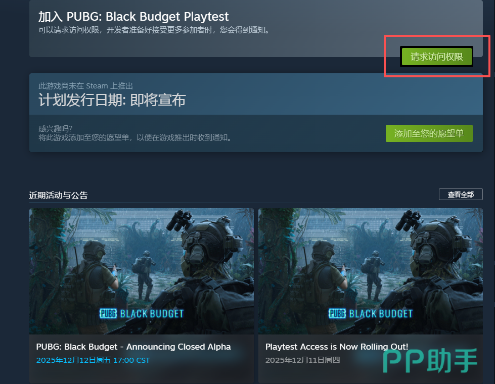 根据Steam平台公开信息,PUBG“黑域撤离”测试页面已正式上线。用户可在商品详情页底部找到“请求访问权限”按钮,点击提交申请后,系统将进入审核流程。审核通过后,测试资格将通过Steam账户绑定的邮箱发送确认邮件,请注意查收并及时完成激活步骤。