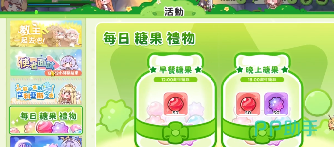 每日定时领取是糖果最基础也最稳定的来源。游戏设定双时段免费发放机制:中午12点开放“早餐糖果”,固定发放50颗基础糖果;晚间18点开启“晚安糖果”时段,除50颗基础糖果外,额外追加50颗限定糖果。两项福利均无需手动抢占或复杂操作,仅需当日登录即可自动到账,单日保底获取150颗。长期坚持,积少成多,可快速形成可观储备量。