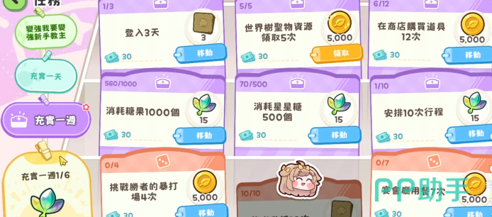 任务系统是糖果产出密度最高的模块之一。建议优先筛选高回报、低耗时任务组合:例如“商店购买12次道具”与“安排10次行程”,操作门槛极低,完成即得5000颗糖果及30个辅助道具;另如“挑战胜者的报答4次”“食堂用餐7次”等轻量挑战,流程简洁、结果确定,每次同样奖励5000颗糖果。推荐执行顺序为——先完成无成本类任务(商店/行程),再推进挑战类目标,确保资源利用效率最大化,避免无效消耗。