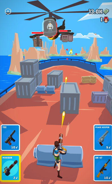 游戏里按住屏幕就能射击,松手就躲掩体,操作简单但关卡设计有意思。画面是真人比例的写实风格,看着比较有代入感。武器需要自己买,散弹枪狙击步枪火箭筒都有,打不同敌人换不同枪,沙漠货船、火车车厢这些场景都能去。还能开车追逐坐船对战,通关后可以解锁不同新角色,有40多个关卡,boss战也很丰富,射击过程不会太单调。
