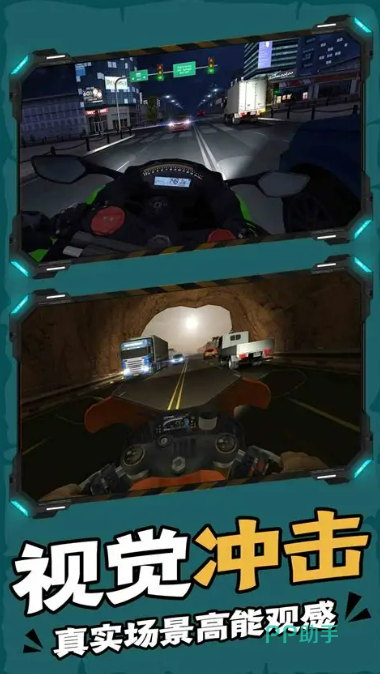 融合沙漠戈壁、滨海公路、都市立交桥等差异化实景地图,强调环境交互逻辑——例如城市赛段需预判交通流、规避突发障碍物,沙漠赛段则需应对沙尘遮蔽与松软陷车风险。内置生涯模式包含新人晋级、厂商合作、世界巡回三大成长路径,任务体系涵盖特技表演、限时突围、团队接力等多样化挑战。采用第一人称驾驶视角配合实时震动反馈与动态声场系统,搭载高保真引擎音效模型,精确模拟不同转速区间下的轰鸣频谱与排气脉冲感,强化沉浸式骑行代入体验。