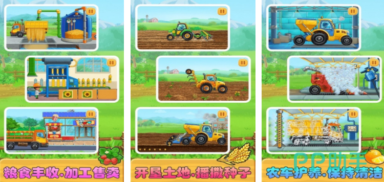 城市儿童普遍缺乏对农业生产过程的直观体验。本作以模拟经营为核心,让孩子化身小农场主,参与翻土、播种、灌溉、收割等完整农事流程。游戏中包含拖拉机、收割机等农机操作环节,同步融入作物生长周期知识;另设车辆清洁与基础保养模块,潜移默化提升手眼协调与任务规划能力。