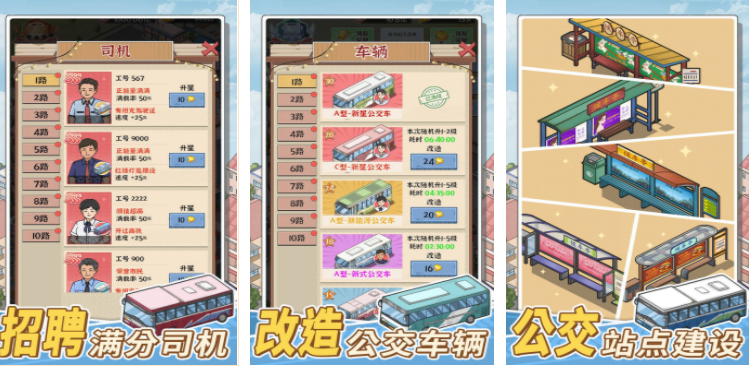 聚焦公共交通领域模拟经营,玩家从零起步创办公交公司。核心操作包括规划行驶路线、配置车辆类型、雇佣及调度司机、增设站点等。收益来源于乘客运输量与线路覆盖率,成长路径清晰但无限时活动或强制打卡机制,策略重心在于城市交通网络的逻辑优化与长期布局。