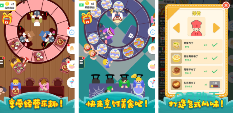 以俯视角模拟真实厨房操作,玩家经营专属餐厅,接待风格各异的顾客。每单订单明确标注食材偏好与摆盘要求,需合理规划切配、烹煮、装盘动线。随着等级提升,可解锁新厨具、食谱及店面装饰,收益用于持续优化服务效率,整体流程流畅无冗余指引。