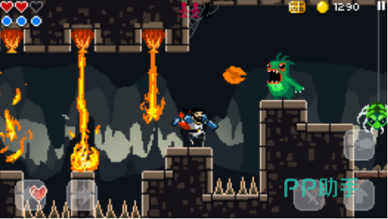 本作采用经典横版像素美术风格,玩法逻辑贴近传统平台动作闯关设计。玩家需在不断变化的路径中闪避陷阱、击败敌人,全程共设30余项高难度挑战任务及9个限时通关关卡。敌对单位涵盖飞行生物、僵尸等30多种类型,强调反应速度与操作精准度。