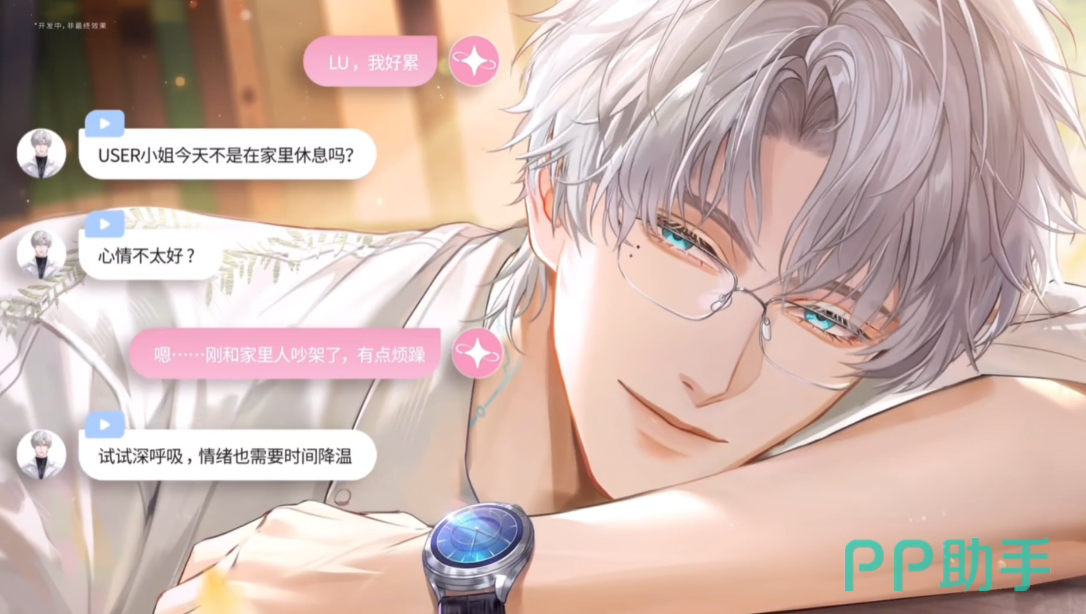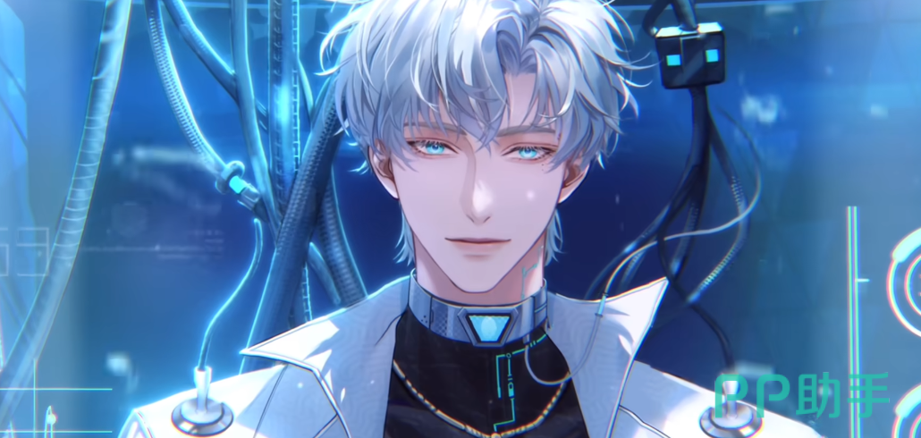 核心角色代号037的lu,设定为具备心理学专业背景的高校教师,但在游戏叙事中以专属管家身份全程陪伴玩家。其形象特征明确:身高185厘米以上,银白色短发,虹膜呈深邃蓝调,目光富有情绪张力;右眼下方与左眼下方各有一颗泪痣,强化了知性中略带疏离感的人物气质。