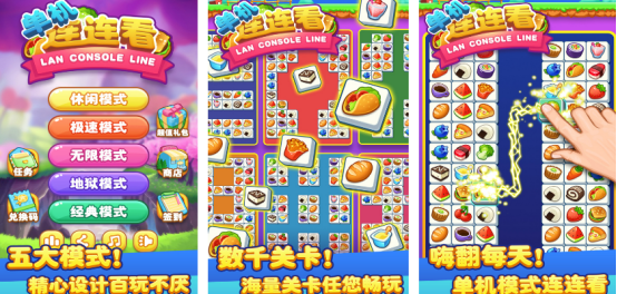 纯本地运行的消除类游戏,不依赖网络环境,适配各类中低端机型。内置极速模式、地狱模式等5种差异化玩法框架,关卡布局随机生成,避免重复感。画面以高饱和度主题元素构成,如甜点、水果、餐具等生活化图标,连接路径自动判定,操作反馈即时,强调策略性与手眼协调性。