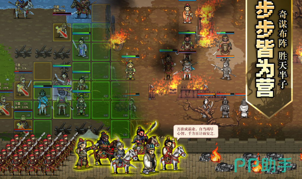 一款高完成度的像素风战棋类单机作品,构建出覆盖中原至江东的超大比例地图,每场战斗均需结合地形高低、天气影响及武将特性进行精密推演。角色以棋子形式参与部署,技能组合丰富且具备连锁反应机制,支持自定义难度与多周目继承系统。其考究的历史细节与创新的博弈规则,使其成为战棋爱好者公认的优质移植范本。