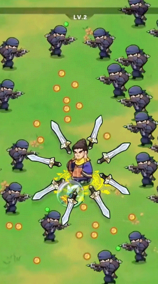 游戏核心机制围绕“旋转攻击”展开,飞刀在空中持续旋转并扩大伤害范围,玩家需实时调控旋转轴心与刀阵覆盖区域。初始仅配备基础飞刀,通关特定节点后逐步开放新刀型,包括高速连发型、大范围滞空型及反弹追踪型等。敌方单位呈波次刷新,数量与机动性随进度提升,考验玩家对刀阵朝向、释放时机与走位协同的综合掌控力。