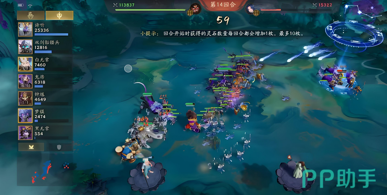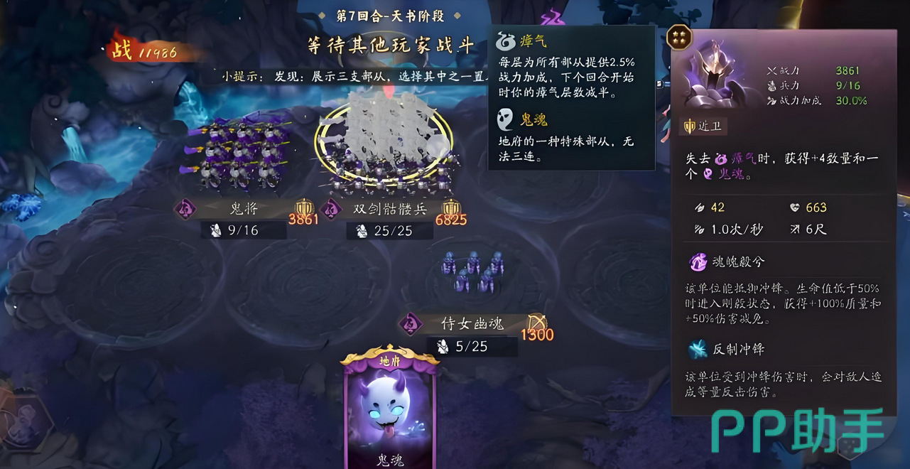 运营节奏需严格遵循三阶段划分: 前期(1–4回合)以阴兵为核心过渡单位。其被动效果可在每回合结束时生成瘴气,并触发鬼将技能,额外召唤战士单位,实现资源与兵力的双重滚雪球。此阶段应主动寻找击杀窗口,通过多波次阴兵释放快速堆叠瘴气层数,建立初始属性压制。 中期(5–7回合)重点补强奈何桥守卫与五岳卫兵。前者直接提升场上战士单位总数;后者与小鬼存在联动加成,可进一步放大小鬼的数值转化效率。需注意:小鬼既是可参战的灵活单位,也是召唤阎罗的唯一媒介,同时具备出售变现功能,因此在经济规划与战力取舍间需保持动态平衡。 此时部队等级与装备基本成型,瘴气增益进入爆发期,整体战力达到阶段性峰值,应果断推进,扩大控制区域与资源获取优势。