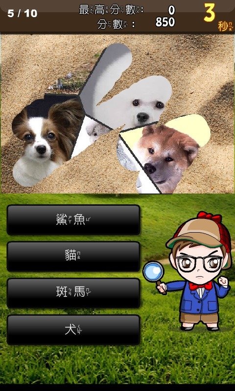 该作突出动物分类学知识普及,每张图鉴标注对应物种的正式中文名、拉丁学名、原产国家及典型分布区域。核心玩法为轮廓识别+多选应答,特别设置“近缘种对比关卡”,例如雪豹vs云豹、美洲狮vs猎豹;另含动物拼图模块,将身体结构拆解为头、躯干、四肢、尾部四部分,支持自由拖拽组合,深化解剖认知。