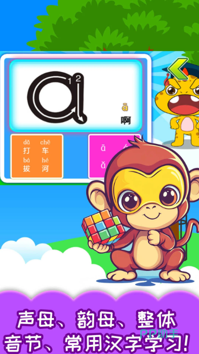 专为3–8岁儿童研发的系统性拼音启蒙工具。课程体系严格对标小学语文课程标准,完整覆盖23个声母、24个韵母及16个整体认读音节,共计400余种标准拼音组合。采用“儿歌+动画+跟读+拼读练习”四位一体教学模式,每首原创儿歌均匹配精准声调节奏与生活化语境,帮助孩子在反复吟唱中内化发音规则。同步嵌入语音识别技术,实时反馈发音准确性,强化听辨与输出能力。界面设计色彩柔和、操作零门槛,充分契合低龄儿童注意力特点与认知发展规律。
