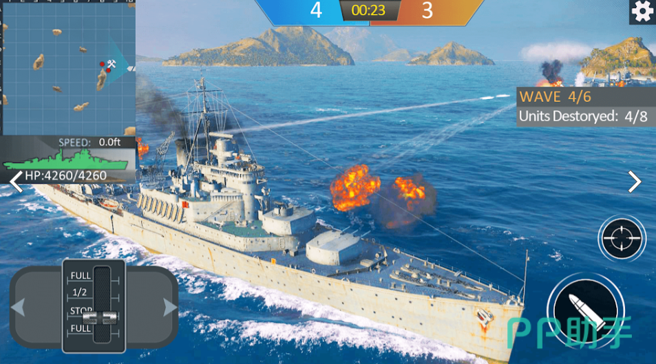 本作采用高清建模与动态光影技术,爆炸瞬间火光四射、音效震耳欲聋,营造出强烈的甲板临场感。核心玩法延续原版战术内核,同时全面升级:战前可自由配置舰种组合、设定主副炮射击优先级、调整编队几何形态;实战中需实时追踪敌舰航迹、预判转向意图、动态微调舰位,并可呼叫舰载航空兵实施定点打击。手脑并用的设计让每一场对决都充满变数与张力。