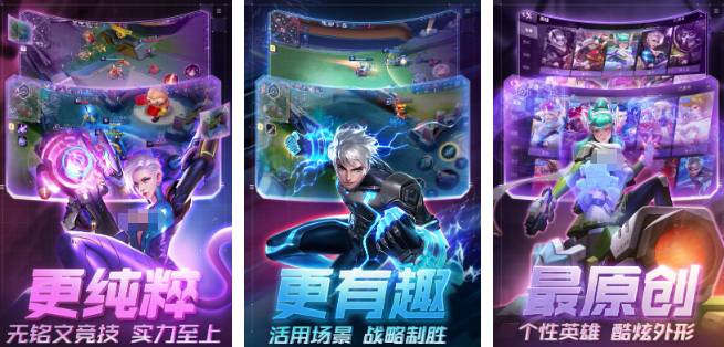 英雄体系在原有的基础上还新增了很多新的角色,部分授权的英雄还原了经典的技能招式,在保留四技能的基础上还设计了双摇杆的操作模式,回到熟悉的操作手感上,战场采用的是科幻风格的地图,地形的设计上包含了高低差和草丛的视野机制,皮肤系统新增了高阶的品质类型,部分皮肤会具备着双形态的切换效果,战斗中也可以触发技能特效。