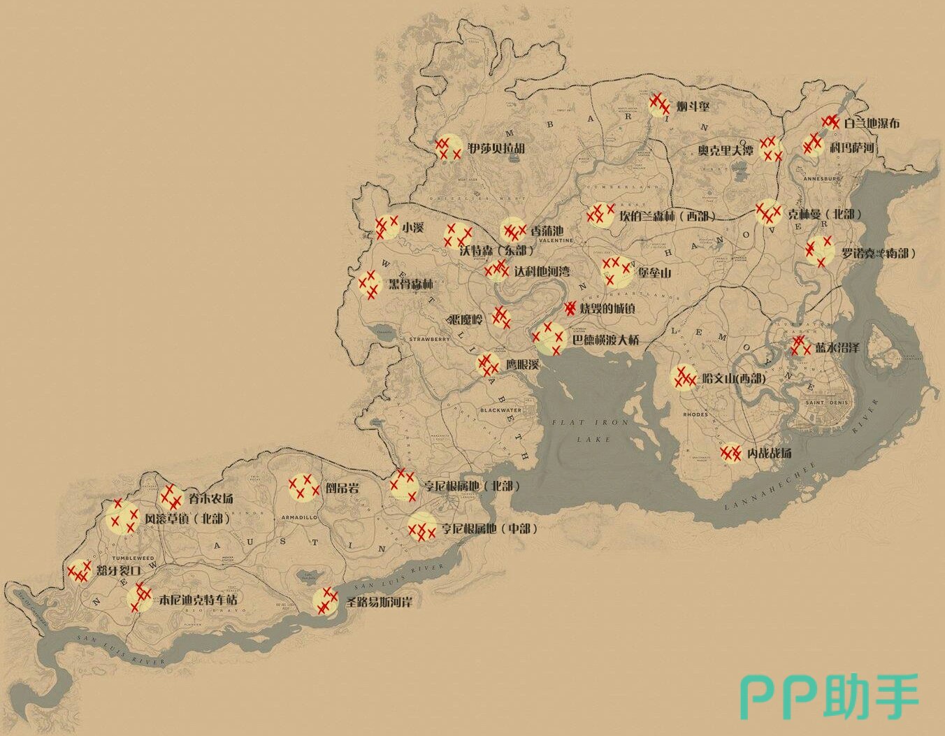 在《荒野大镖客:救赎1》中,全游戏共设9张独立藏宝图,每张对应一处金条宝藏。首张位于犰狳镇倒吊岩后方大树根部;第二张于唐胡里奥湖右下方哮狼河悬崖岩缝;第三张藏于风滚草镇主屋内壁夹层;第四张在墨西哥圣路易斯河岸,需定位悬挂动物头骨的枯树;第五张位于墨西哥南部开阔地,目标为三块呈三角排列的巨型岩石;第六张“道格拉斯金条”地图坐落于墨西哥地图最北端高地;第七张“要塞金条”地图紧邻圣路易斯河左上方断崖;第八张“皮科特金条”地图位于比彻之愿牧场,需辨识两排平行石列旁的孤树;第九张“斯通沃尔金条”地图则置于解救约翰逊任务终点洞穴内部,建议通关该章节后顺路开启。