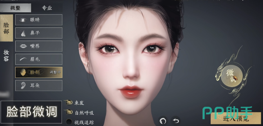进入捏脸界面后,首步为场景适配与入口选择:系统依据设备类型(移动端/PC端)自动优化交互逻辑。首次创建角色时,可直接从角色生成页跳转至全新捏脸模块,实现从零构建;若需预设或调整已有角色,则可通过游戏内置微端或独立编辑器的“素颜模式”进入,支持本地草稿自动保存,有效防止因意外中断导致数据丢失。界面采用模块化导航设计,按“轮廓→五官→发型→妆容→配饰”五大核心维度分层展开,各模块内嵌多级子参数,点击即可调出滑块、色盘、旋转轴等精细化调节控件。