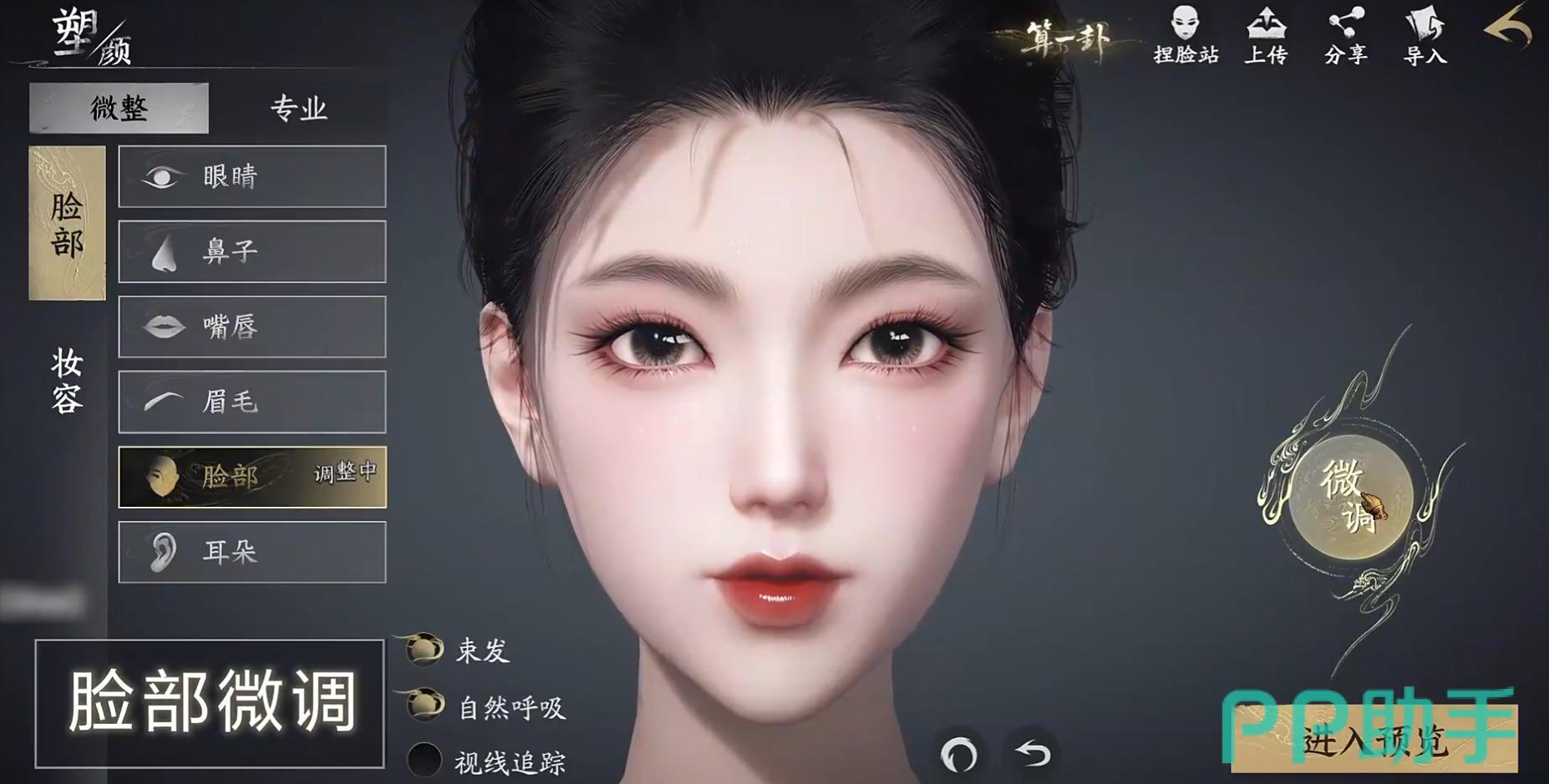 顺应AI技术发展趋势,捏脸系统集成图像语义识别能力。玩家可通过上传参考人像或输入风格化关键词(如“清冷剑客”“明艳女侠”),由系统生成符合语义特征的初始脸型框架,大幅提升创意落地效率。同时,得益于弥赛亚引擎的全局一致性渲染,预览界面与大世界实机表现完全一致,彻底解决“捏脸即失真”的行业通病。